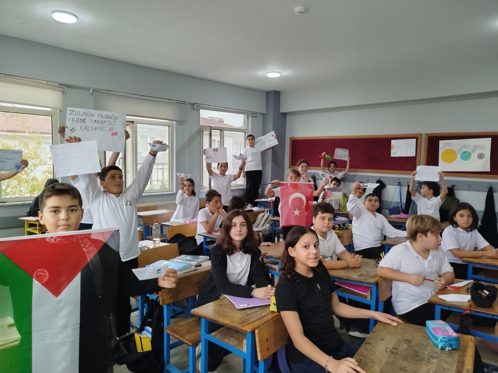 Aksa Tufanı'nın 2. yıl dönemünde 7 Ekim Salı günü Milli Eğitim Bakanlığımızın talimatıyla düzenlenen Gazze ve Filistin farkındalık etkinlikleri öğrencilerimizin büyük ilgisi ve desteğiyle görsel bir şölene dönüştü.